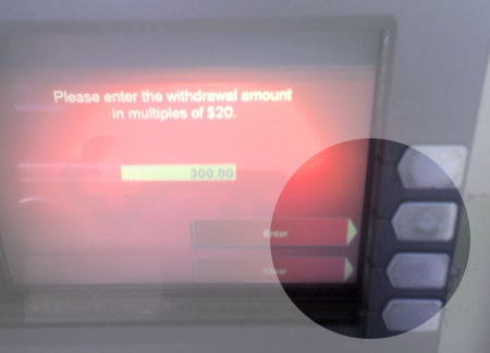 It seems like the percentage of cash machines which still suffer from button/screen parallax is still pretty damned high. This design problem has already been solved in at least three ways (touch screen, angled display, and low-profile screen bezel) and yet it seems like 90% of all ATM machines still look like this: