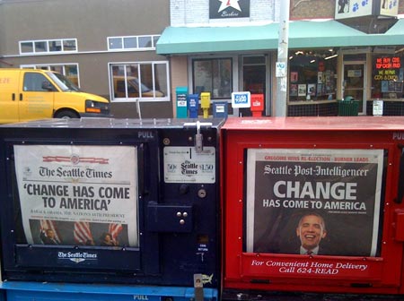 Sometimes people wonder why we have two newspapers in Seattle. The answer, of course, is that some people prefer reversed-out type: