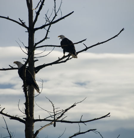 In a nutshell, I want to build some sort of structure that will encourage eagles to land on it. I know very little about eagles, but I do know that before the top of a giant dead tree in my neighbor’s yard snapped off last year, we had eagles landing on it almost every week. Now, they just occasionally fly by and never seem to hang out. So the thought is, if I can build some sort of structure that has similar perching qualities to that dead tree, eagles should theoretically start landing on it.